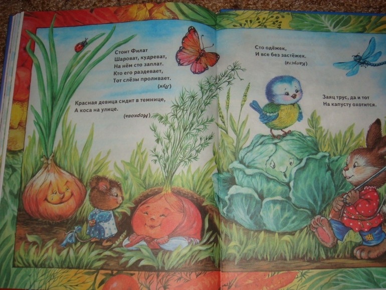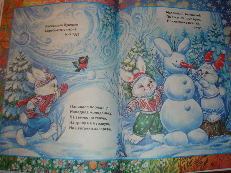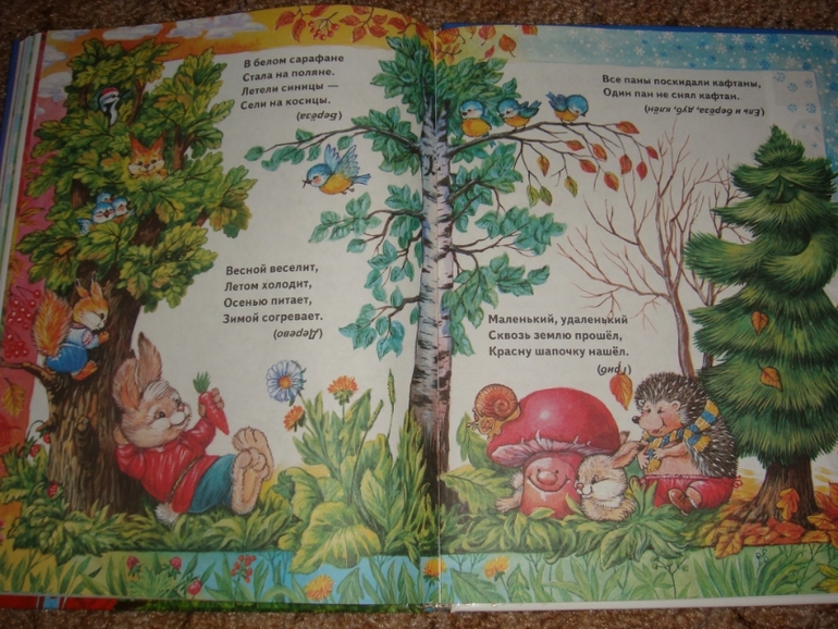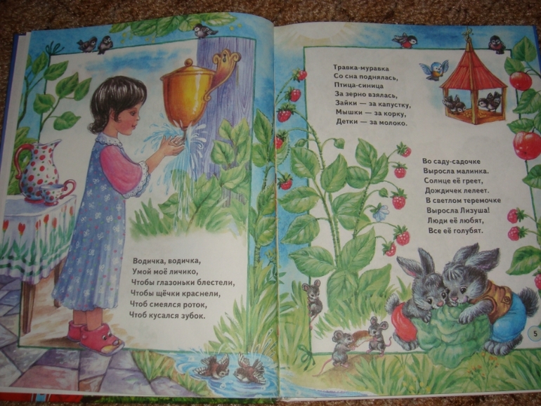 В книге нет последовательности в расположении сказок, потешек, загадок и прибауток. Они даны в разброс. и поэтму нет содержания . Получается очень забавно, то стихи-потешки, то вдруг сказка, потом загадки и снова стихи. Книга таким образом не успевает наскучить маленькому ребенку.