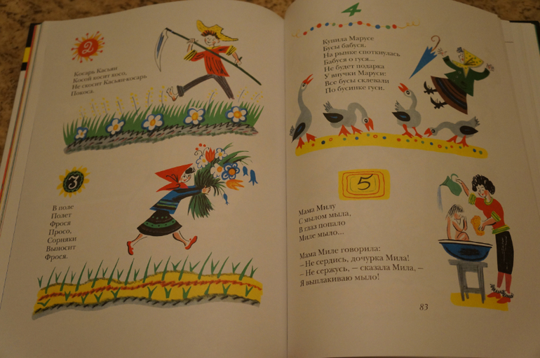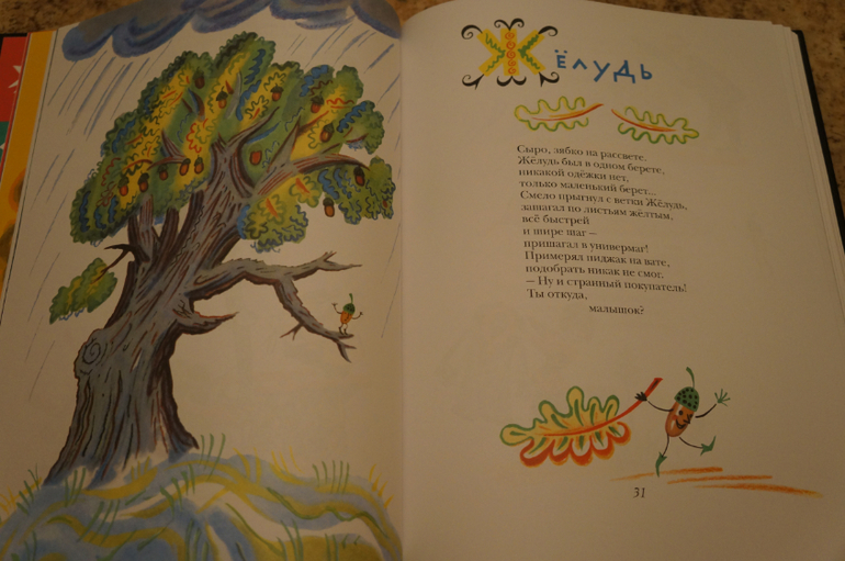 Небольшой сборник И.Демьянова содержит чтиво на разное настроение: сказки и скороговорки, дразнилки и смешинки, стихи, загадки, считалки. Сказки все с юмором и в необычной стихотворной форме. Например, в сказочной кузовке баба-яга соревнуется с самолетом; горошинка убегает от петуха, грачей и медведя прячется в детском садике; а желуденок идет в универмаг примерять пиджак....