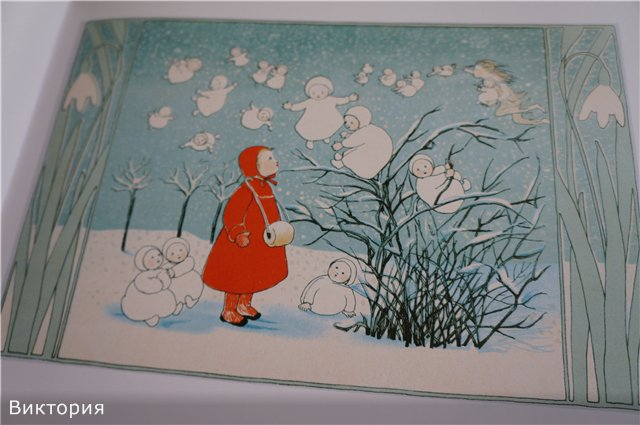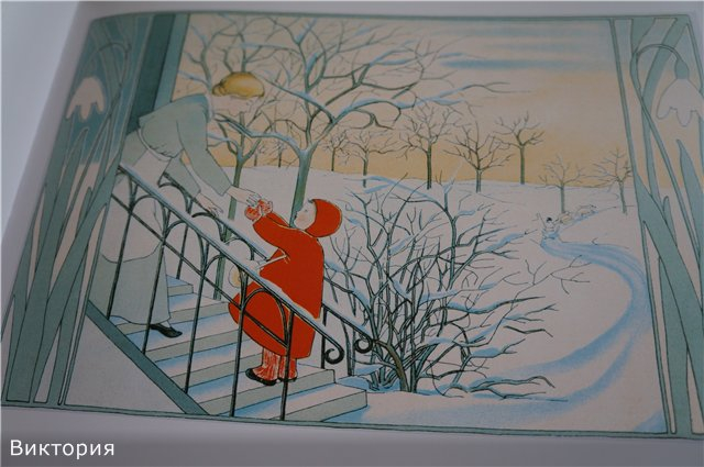 Книга по-настоящему зимняя и морозная. От картинок веет холодом, но в тоже время они такие теплые и уютные. Вся история пропитана волшебством, очень легкая и воздушная. Все вокруг снежно-морозное и только Маничка в красном пальтишке, как яркий акцент.