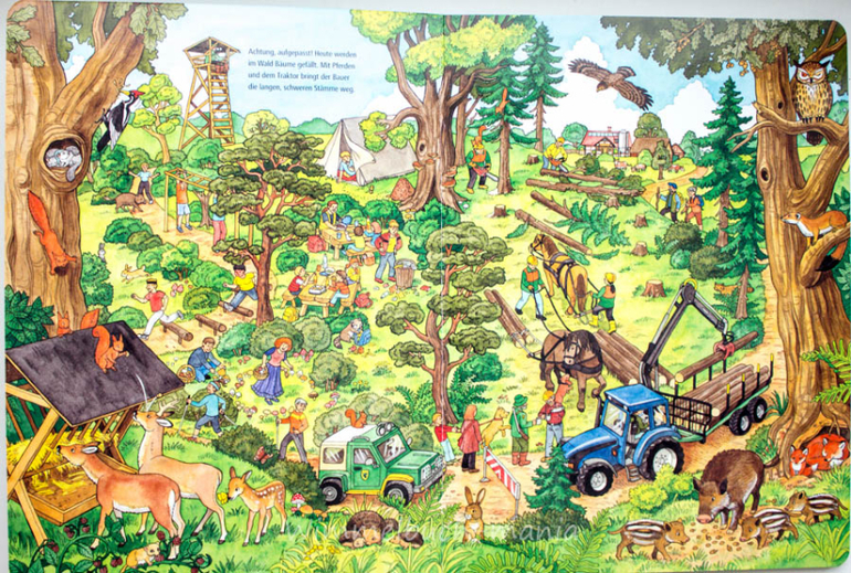 Еще два очень достойных виммельбуха. Они поменьше форматом,но страничек побольше. Выполнены на более толстом и прочном глянцевом картоне,цвета поярче будут первых книг поста.