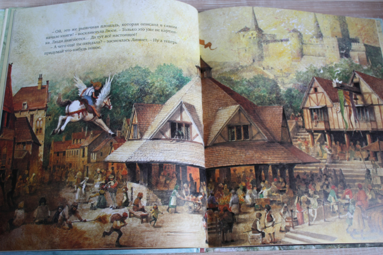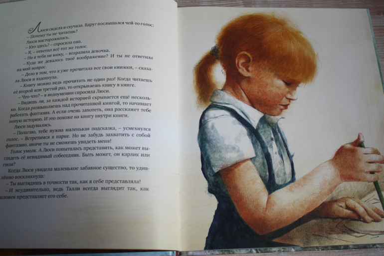 Иллюстрации Ингпена очень взрослые,текст Вестерлунд ,заставляющий поразмышлять. Покупала с целью,чтоб были в доме высокохудожественные книги,воспитывающие эстетический вкус,и не ожидала,что 3х-летка полюбит.Рассказ о том,что если книги перечитывать,можно увидеть в них совсем не то,что увидел в первый раз при прочтении.Полет фантазии уносит девочку,которой было уже нечего читать,на волшебной карусели в воображаемое путешествие.
