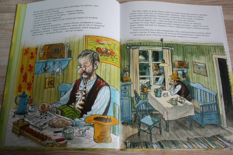 Купила книгу,когда 3х не было. Мне показался сложным стиль повествования,такой заунывный немного.В самом деле,повествует же старик-зануда Петсон). Сын заинтересовался книгой после 3х и теперь у него любовь-любовь.И мультики смотрит и новые книги покупать просит,и по картинкам сам "читает",рассказывает,что у них там происходит.Конечно,ребенок видит в озорном котенке себя.