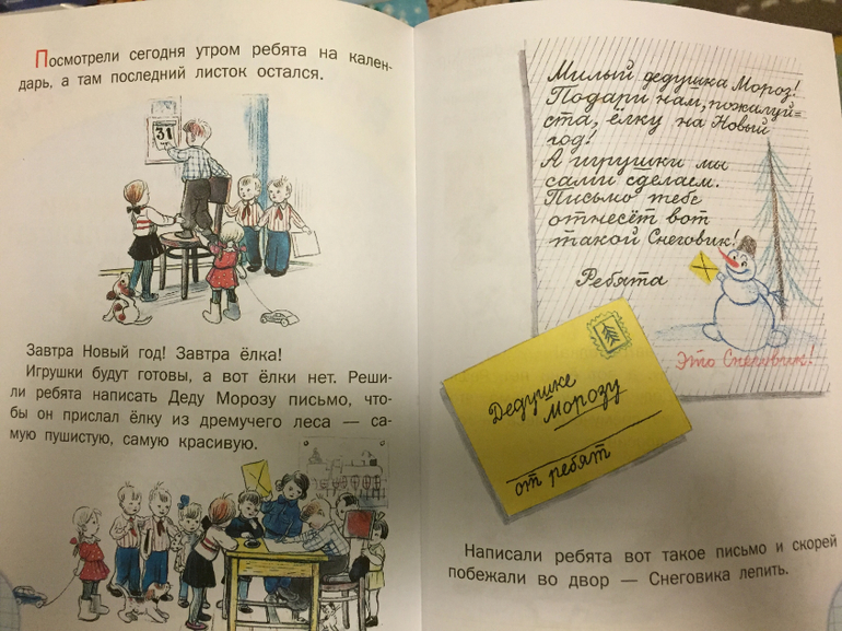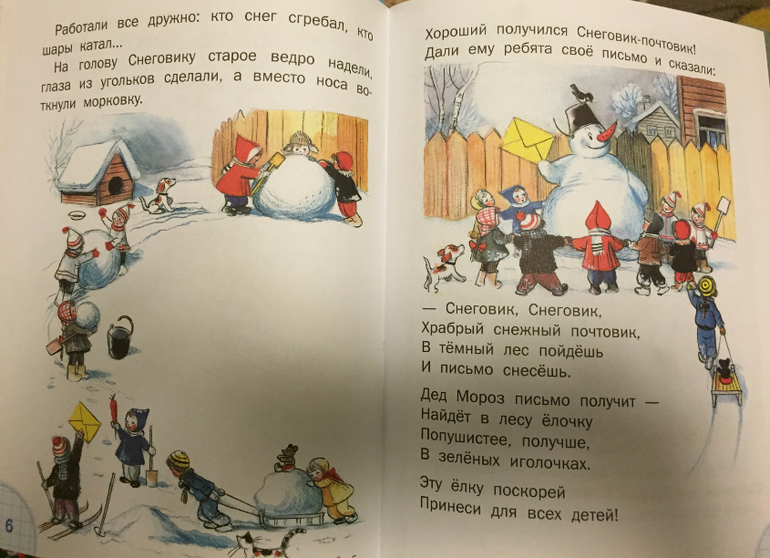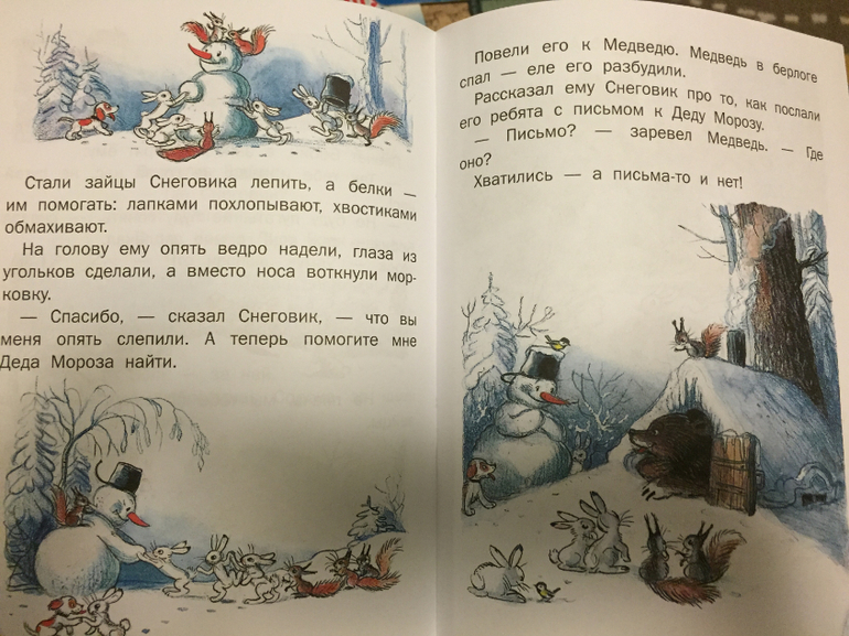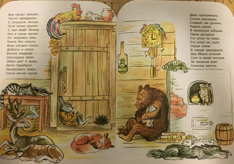 Мы поклонники Сутеева и в Новый год просто не обойтись без его прекрасных рассказов. Но решила купить именно эту книгу с иллюстрациями как в мультике советском, чтобы познакомить Митюшу с настоящим русским Дедом морозом и Снегурочкой.