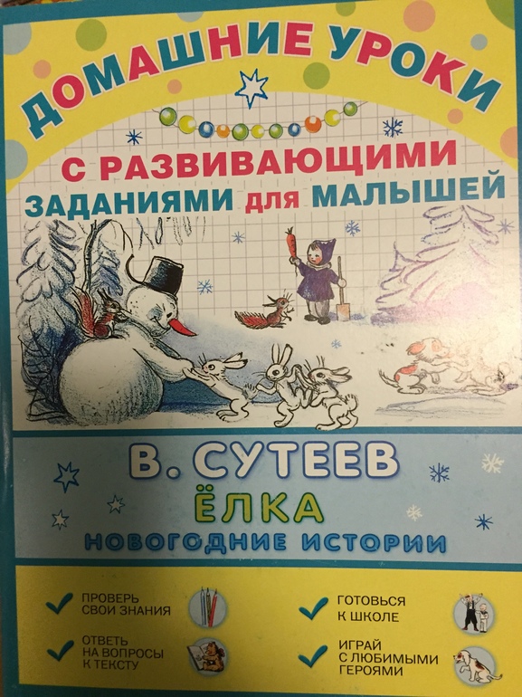 7. "Домашние уроки с развивающими заданиями для малышей. Елка. Новогодние истории. В.Сутеев". (лабиринт, май-шоп)