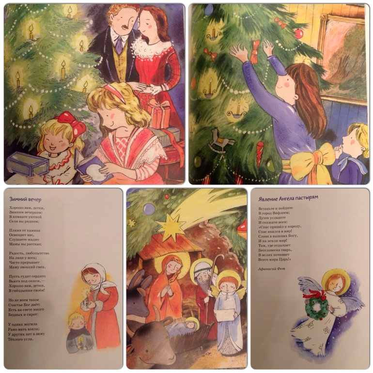Большой толстый сборник размера А4 с хорошей полиграфией, приятными иллюстрациями. В него вошли стихи русских классиков о Новом годе, зиме, Рождестве, самые известные сказки (их немного), а также загадки. Искала такую книгу - не на один год.