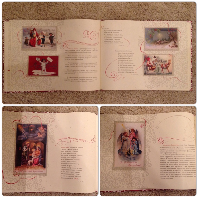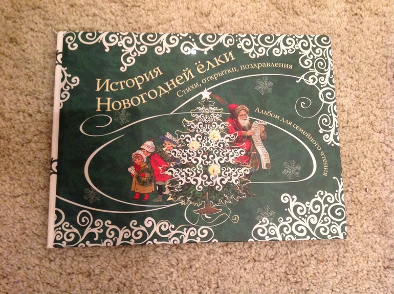 Книга альбомного формата, потрясающего оформления, оформлена новогодними открытками разных времен, содержит стихи, рассказ об истории праздника, традициях и даже рецепты.