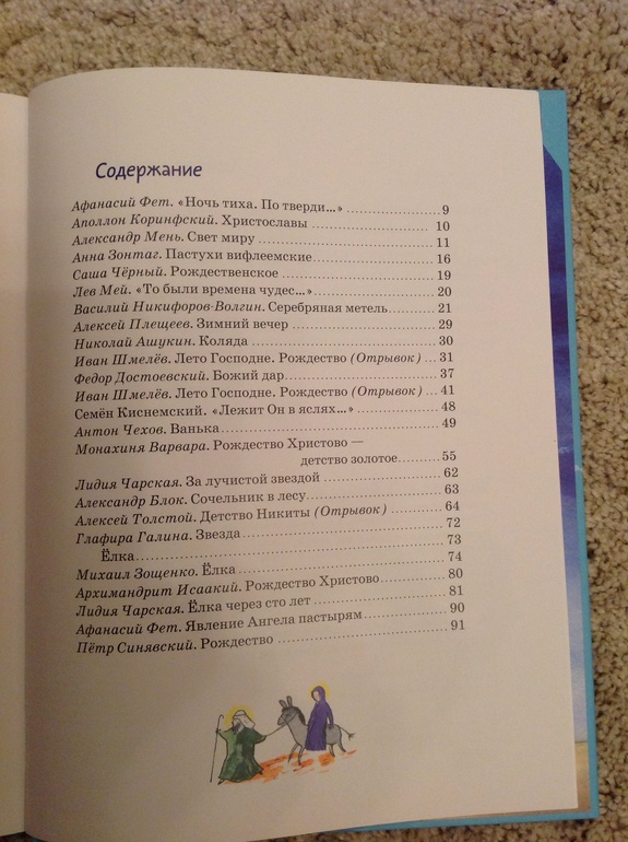 Сборник отличный!!!! В него вошли стихи известных русских классиков и православных авторов о Рождестве, есть сказки и рассказы. В прошлом году она нам оказалась рановата, попробуем в этом году. Книга явно не для малышей, я бы сказала на дошкольный и младший школьный возраст.