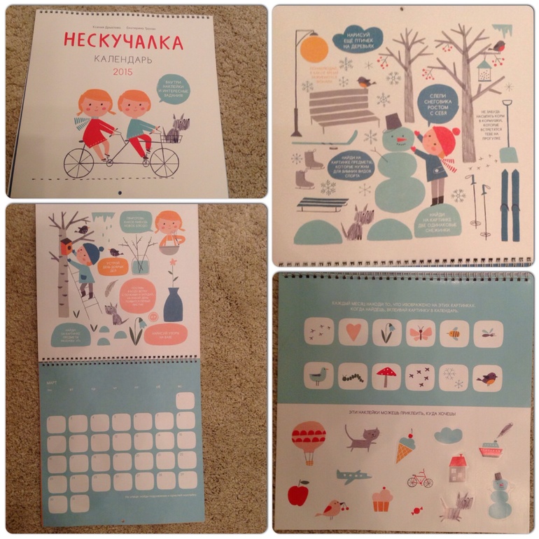 Календарь позволяет написать о планируемых событиях, а еще выполнить ряд заданий, приуроченных к каждому месяцу. В конце есть лист с наклейками, которые нужно клеить по мере выполнения заданий. У нас в семье календари пользуются большим спросом, точнее каждый год мы вешаем на стену один общий календарь, где отмечаем важные даты и события, но всегда не хватает места для подписей рядом с числами. В этом году все будет интересней гораздо. Еще и Володя подключился к заполнению календаря!