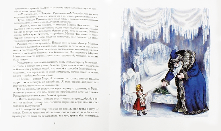 По сюжету «Мороз Иванович» напоминает русскую народную сказку «Морозко». У многих в детстве была эта книга с чудесными рисунками Конашевича. Издательство Мелик -Пашаев вернуло нам ее в неизменно виде.