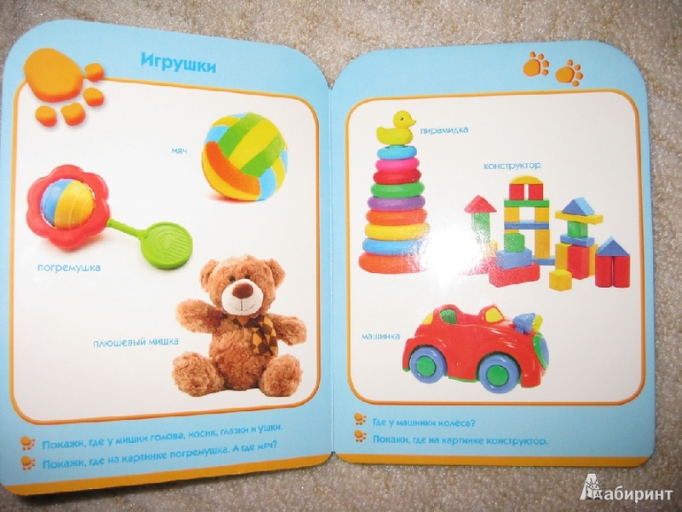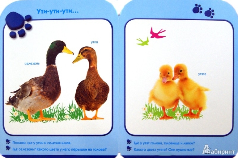 Но, найдя эти книги на русском, я была приятно удивлена, что внизу перечислены вопросы, которые можно задавать малышу, обсуждая изображения. Для меня это является большим плюсом, т.к. моё воображение дальше перечисления названий животных не заходит.
