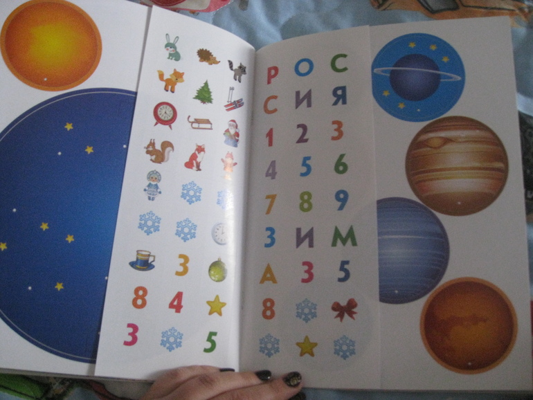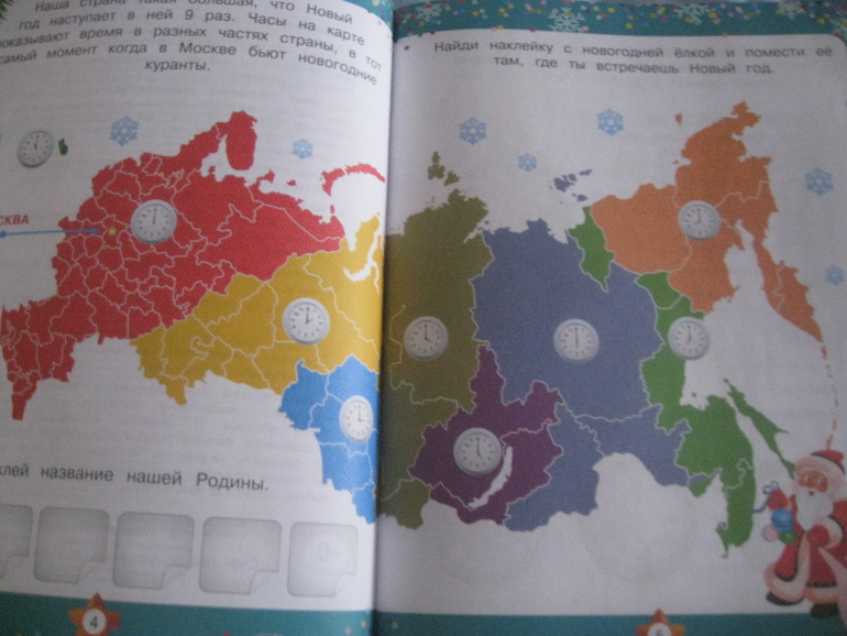 В серии несколько книг, все на офсете, цветные, с твердой вкладкой и наклейками. Задания в чем-то схожи. Здесь очень понравилось, что на первом же развороте разговор о времени - сколько раз в России наступает НГ - интересно и полезно. Дальше задания на счет, раскраски, дорисуй по образцу, прописи, лабиринты. На последней странице традиционное письмо ДМ. На твердой вкладке планеты - материал для изготовления поделки. Во многих заданиях предполагается использование наклеек - они здесь же. Всего 32 страницы. Честно говоря, покупала книгу в подарок. Но ребенок увидел и отобрал))). Не удержалась и заказала второй вариант из этой же серии.