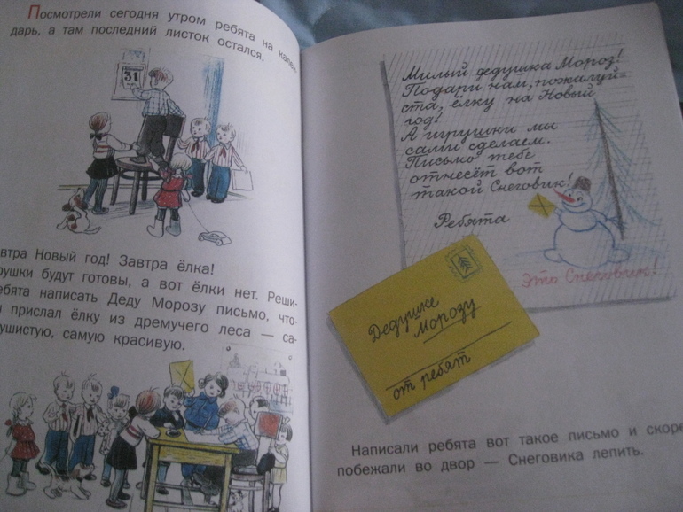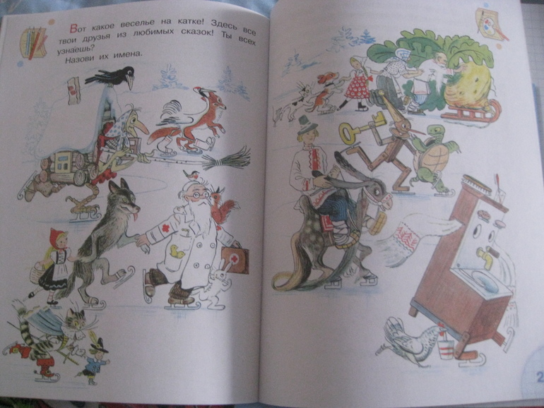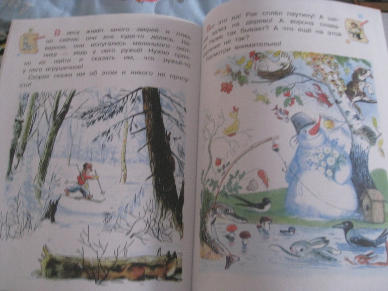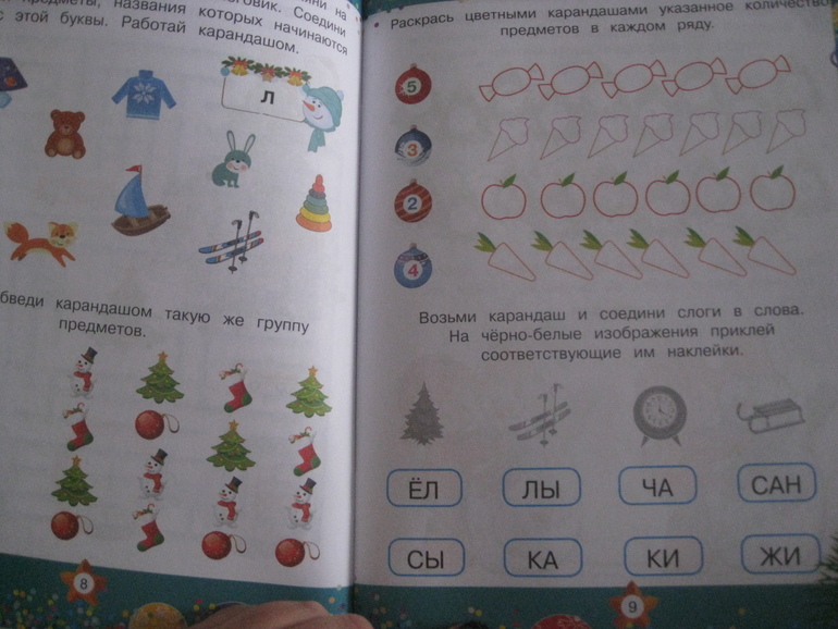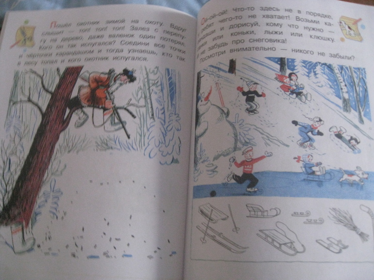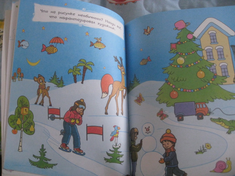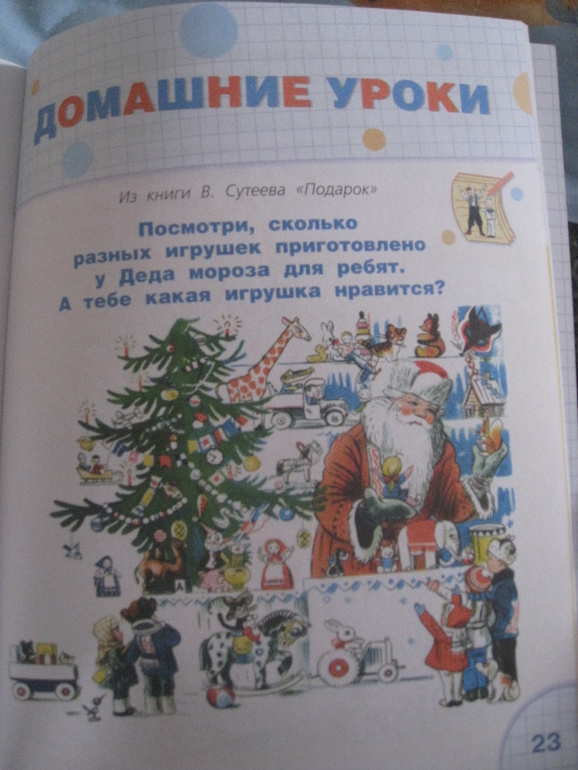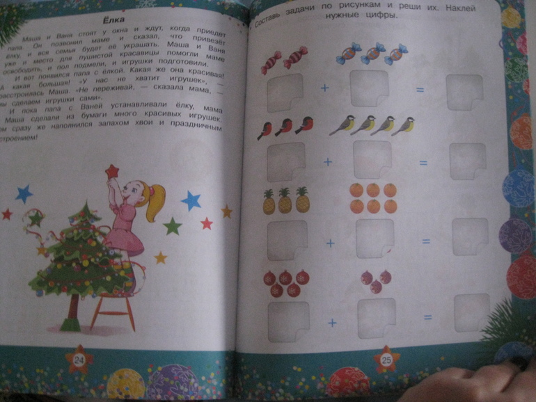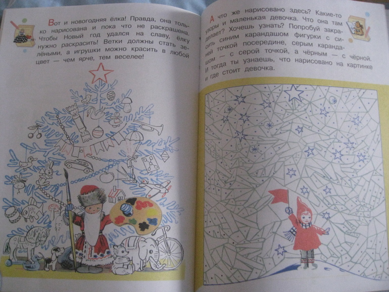 5) Домашние уроки с развивающими заданиями для малышей. Пособий тоже несколько в серии, и новогодние, и не очень. Сутеев, и этим всё сказано))) Сначала рассказ про елку ( к сожалению, не помню, как назывался соответствующий мультфильм), затем несколько страничек с "домашними уроками": раскрась по схеме, отыщи героев, дорисуй, найди. Заданий буквально 6-7, то есть меньшая часть книги. В основном всё-таки повествование с отличными иллюстрациями.