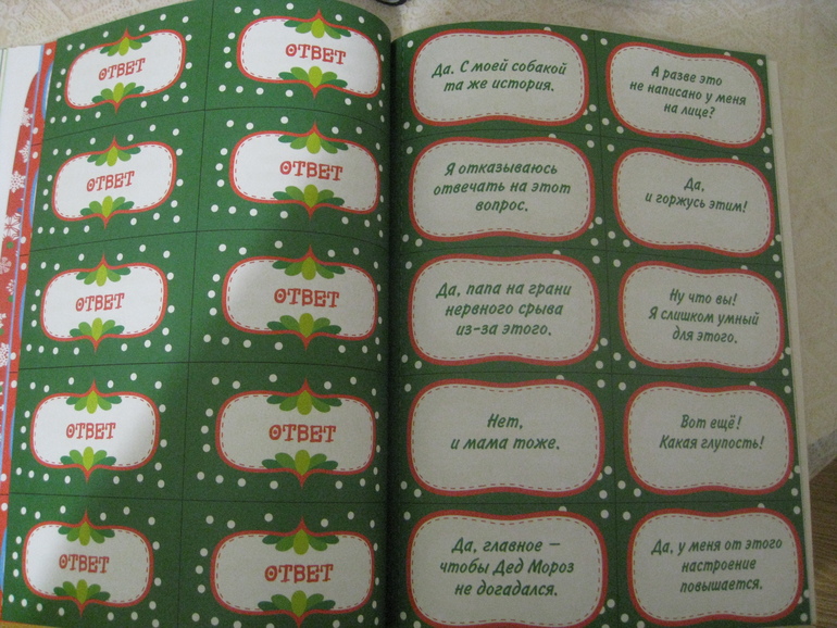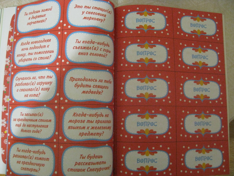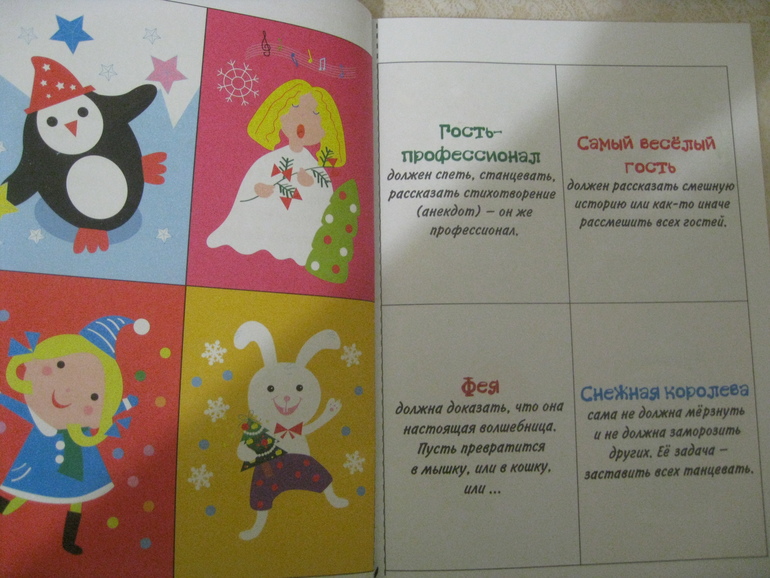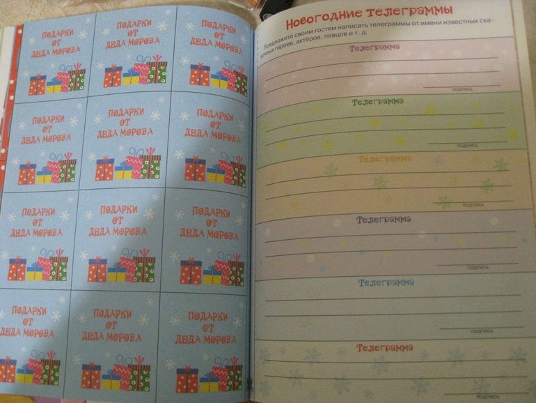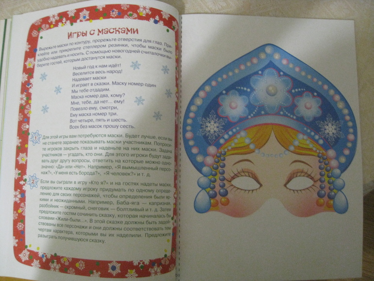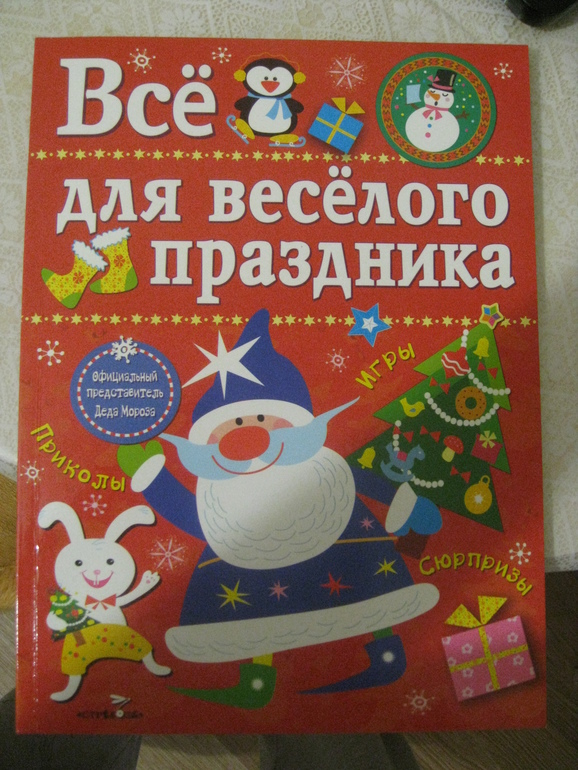 Просто мастхэв для меня. Объясню почему. С тем, как занять детей, у меня обычно сложностей нет. Со взрослыми за новогодним и за любым праздничным столом намного сложнее. То ли гости - родственники и друзья - у нас слишком скромные, то ли у меня не хватает фантазии. Эта книга - набор готового материала для семейного праздника. Не только для детей, но и для всей семьи. Дипломы, телеграммы, игры, медали и карточки для гостей, маски, и т.д. всё на плотной бумаге, яркое и интересное. На одну ночь развлечений точно хватит!