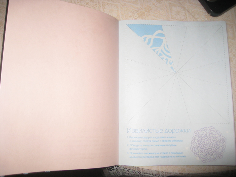 6) Наборы для вырезания снежинок от "Стрекозы". Расточительство, конечно. Множество схем есть в Интернете. Но мне хотелось нарядную книжку, тем более, что сын дорос наконец-то до вырезания. В каждом наборе по 8 снежинок, все странички разноцветные в пастельных тонах, к каждой снежинке инструкция)))