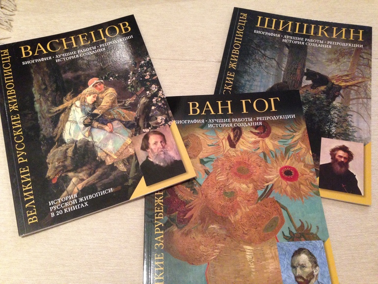 Как Вы видите по обложке, в каждой книге можно узнать довольно подробную биографию автора, ознакомиться с его лучшими работами, увидеть репродукции и узнать о истории создания всем известных шедевров.