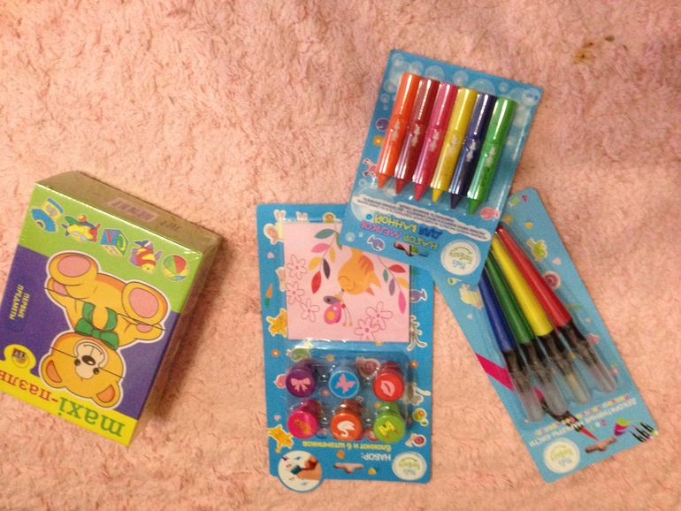 Они, конечно, дороже, зато не плохие, плотные. Но поскольку такие вещи приходится часто менять, чтобы ребенку не надоедало, то у нас их много, даже самых из ашана. Поэтому надеюсь, что не успеют попортиться)))) Карандаши, да, для ванной, сегодня их испытывали, очень понравились дочке, пол-часа калякала на плитке, и оттираются хорошо большим количеством воды и губкой.