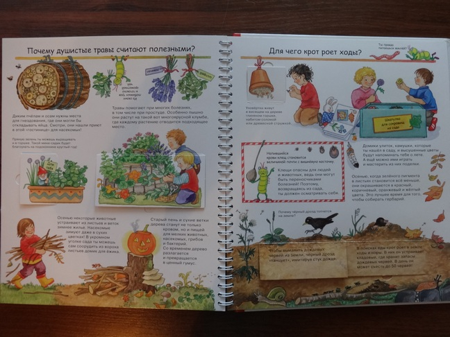 Кроме собственно того, какие растения и животные бывают в саду/на даче, ребенок узнал из книги, как растения развиваются, опыляются, какие насекомые для нас вредные, какие полезные, как некоторые животные ведут себя ночью и зимой. Мне самой книга очень нравится! Рекомендую всем, кто еще не купил.