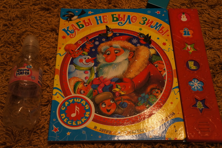 Насколько я не люблю музыкальные книги, но эта прям порадовала! Не просто мелодия, а по 2 куплета песни. Всего 6 песенок проигрывает. Очень хорошая озвучка. Внутри тексты песенок и загадки. А главное зацените размер книги, очень большой! У нас эта книга никогда не убирается, в течение дня все ее включают, рассматривают. (Причем хотела по елочку положить, но не смогла отнять. У меня ее сразу забрали. когда заказ разбирали).