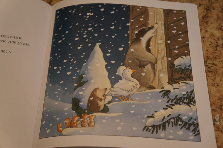 Милая зимняя история для малышей. Мораль сей книги такова "в тесноте, но не в обиде". Всех животных обогрел и приютил у себя в домике сторож Вилли. Приятные картинки, простая история. Есть задания-искалочки. Мы ее читаем в день по 2 раза.