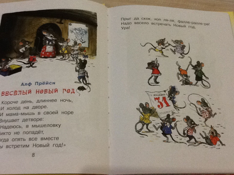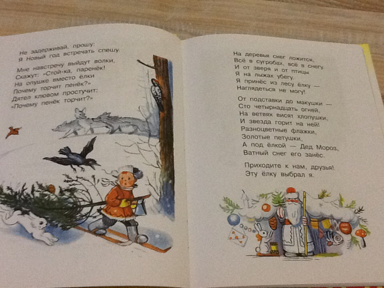 Классика детского рисунка. Книжка небольшая, входят в нее сказки " Ёлка", Веселый новый год" Алфа Прейсна, " Ёлка" Михалкова, " Заяц и рак" Стельмаха, " Как аист на ёлку опоздал" Мурадяна. Как сборник книга хороша, и цена приятная. Ведь тот же " Веселый новый год" отдельно стоит также.