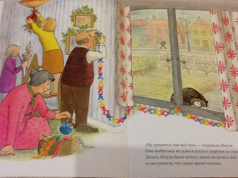 Это третья книга из серии у нас. Очаровательная кошка для любителей пушистых. Простая история о том, как Мяули испугалась ёлки. Красивые рисунки наглядно покажут малышам о новогодней суете, как вся семья готовится к празднику.