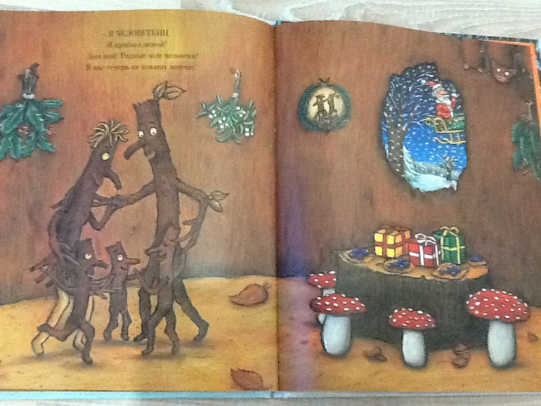 Не престаю хвалить Дональдсон. Её книги прямо вот основа нашей библиотеки . Философская по-взрослому история о палочке-папе, который пропадает по жизни не с семьей, обстоятельства швыряют его в разные концы земли, но на праздник он чудом и с Дедом Морозом попадает домой.