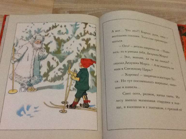 Иллюстрации загляденье, просто каждый разворот- картина. Такая книжка была у меня в детстве. Не сравнится ни с одним картонным или малоформатным изданием этой сказки по красоте, поэтому был куплен дубль. Издание отличного качества, очень плотные , хоть и не картонные листы.