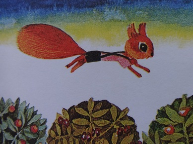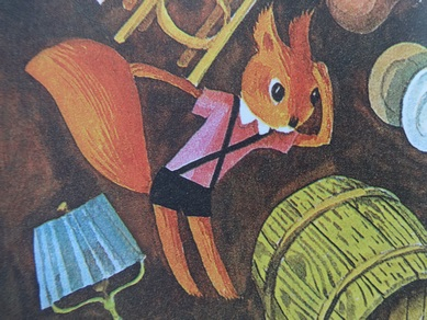 А теперь о том, что в книгах получилось совсем разным. Это, конечно, сами сказки. У Валентины Путилиной ("Приключения Дук-ду") история рассчитана на более младший возраст, разделена на короткие главы, повествование более динамичное. И сама сказка короче (количество страниц в обеих книгах одинаковое, но у "Дук-ду" значительно меньше формат). Мы прочли довольно быстро, за 2 вечера. Мне сказка очень понравилась, она простая и незамысловатая, такая, какая и нужна детям 3-4-х лет, в ней четко прослеживается одна сюжетная линия - преодоление бельчонком своего страха. Причем это хорошо сюжетно мотивировано - бельчонок попал в беду, был разлучен с мамой, от которой до этого не отходил ни на шаг, и помощи ждать неоткуда.