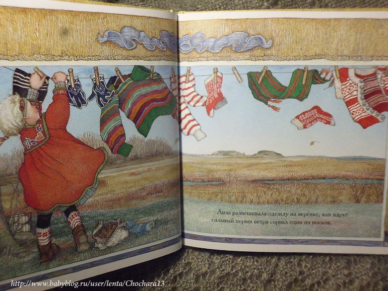 В общем забавная книга. И как игра-запоминалка, и как замечательная, незамысловатая история, да и просто отличнейшие иллюстрации. Такие проработанные, такие натуралистичные! А уж колорит! И в вещах, и в узорах, даже в обстановке - так и ощущаешь себя в гостях где-то в северной европейской деревушке.