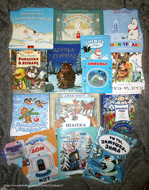 Мы наконец-то вернулись домой после долгих скитаний по Кавказу. И самым приятным (после горячего душа, маминых пельменей и снега за окном) была стопочка книг, которые накопились (прибывая постепенно из магазина, благодаря соседке) за осень. Но о новинках, где всего полно, позже. Сейчас расскажу, какая у нас получилась подборка на тему зимы.