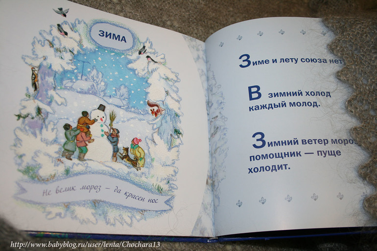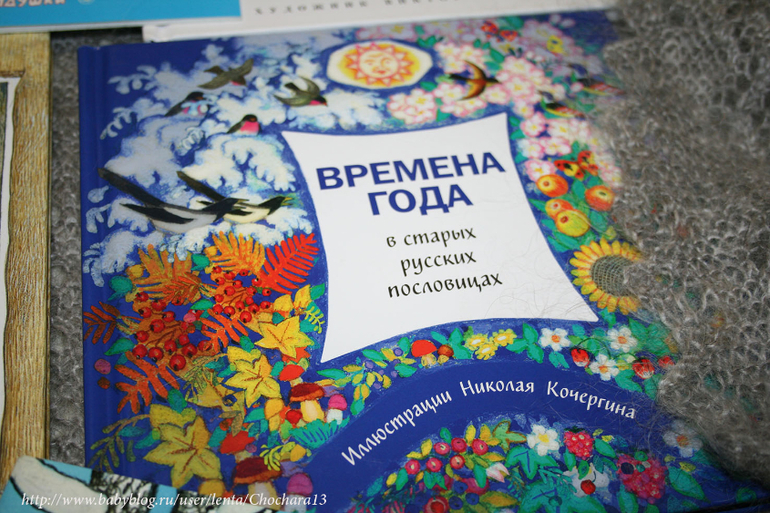 В этом году, после хорошего опыта знакомства с русскими народными загадками в стихах, мы продолжили наше путешествие по родному фольклору. Что касается зимы, то нашими спутниками стали замечательные пословицы и поговорки, собранные в сборнике "Времена года" и украшенные рисунками Кочергина! Читаю вслух зимние пословицы, когда дочка сидит рядом, или во что-то играет, и вроде бы не обращает внимание, но каждый раз оглядывается на меня - что это там мама такое сказала про мороз-красный нос! Это же такое богатство и наследие нашей культуры, в которой язык составляет самую важную часть. По-хорошему, нужна такая старенькая бабушка, или дедушка, которые бы каждый раз, глядя в окно приговаривали - "Такой мороз, что звёзды пляшут"! Ведь пословицы - это прежде всего устная речь. Но, уже если мы позабыли ее, потеряв носителей этой старой русской культуры, то хотя бы в письменном виде их надо иметь, перечитывать порой, чтобы продумать и прочувствовать весь их глубокий смысл.