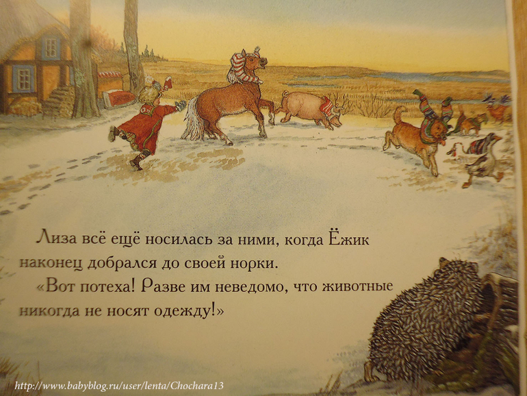 Когда мы ее прочитали в первый раз, она бегала по квартире и разыгрывала сцену - прибежит куда-то и начинает понарошку плакать - "А-а-а-а-а, кто растащил все мои вещи? Ну, где же они??? Ах, эти животные! Отдайте мои носки!" Мы просто катались с нее)))