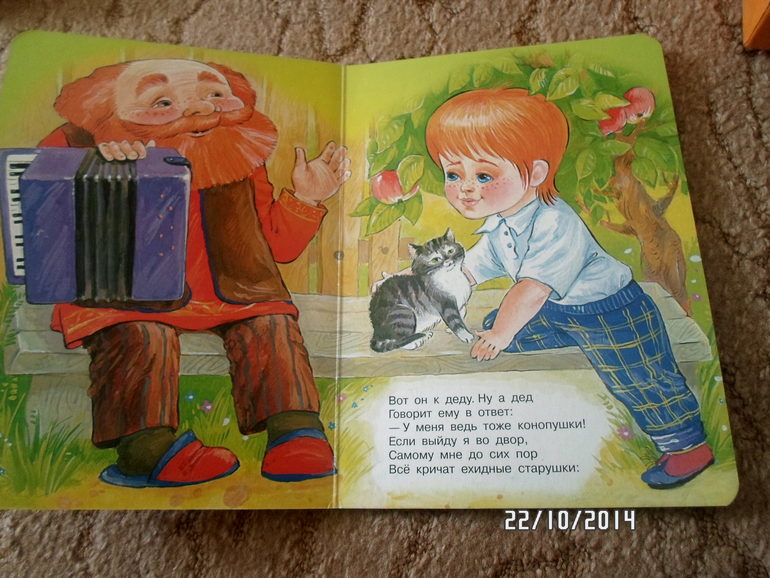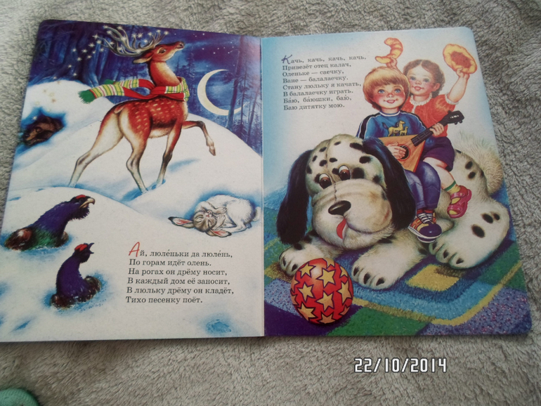 купила картонку и хорошими картинками, и дочь читает и я песенки на ночь пою, хотя всё больше получается рок петь ( город золотой и прочие) Дочке больше нравиться