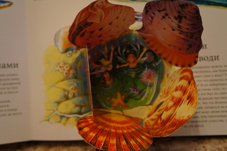 На последнем развороте есть большая и красивая панорама с морскими жителями. Текст очень краткий и в принципе ни о чем. Но преимущество этой книги в сюрпризах и позитиве.