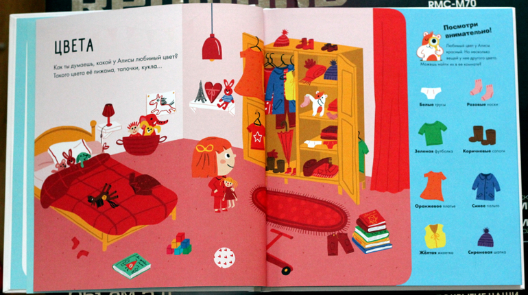 Книга вызвала у нас бурный восторг. Смой мне показалось, что она все же ориентирована больше на детей лет 3, но и дети постарше тоже находят здесь много информации. Книга действительно заслуживает внимание. Очень удобный формат, плотные белые странички, хорошее качество печати. Очень понравилась глава Смешанные цвета, потому что редко где в энциклопедиях и равивающих книжках дается информация, как при помощи нескольких цветов получить новый.