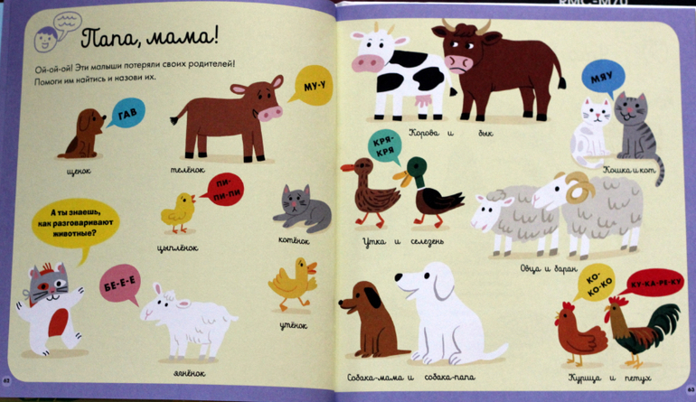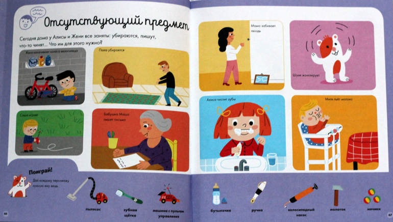 Очень мне нравятся эти задания на внимательность в каждом разделе ("найди не такое и не такое"). Для младших детей можно их не озвучивать.
