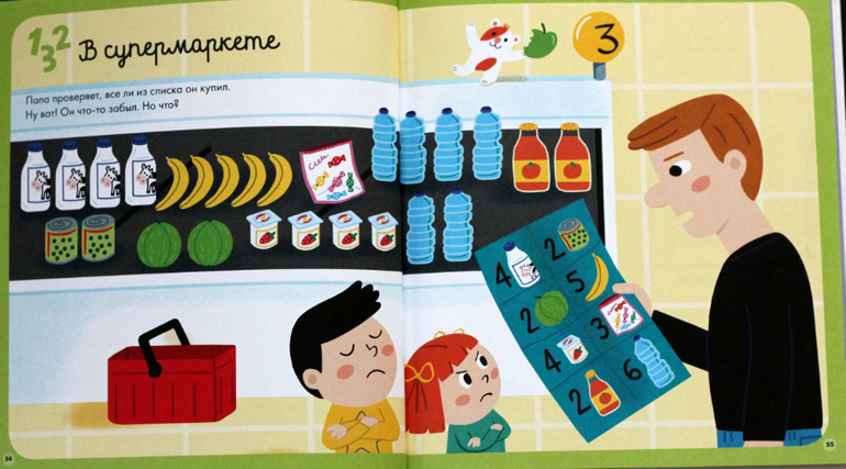 А вот это отличное задание. Обязательно сделаю таких для своего сына по мотивам. Можно и по-настоящему в магазин брать такие списки и сверять с корзиной/тележкой.