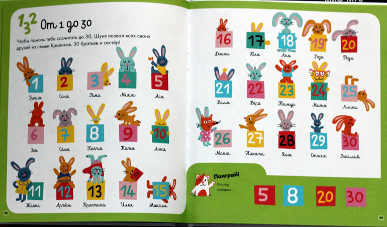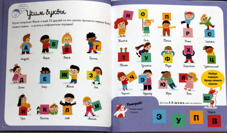 В начале есть страничка, на которой представляются сквозные персонажи книги, они будут появляться во всех заданиях. Книгу можно читать довольно долго, потому что среди заданий есть и совсем простые, и посложнее - прекрасно подойдёт погодкам :)