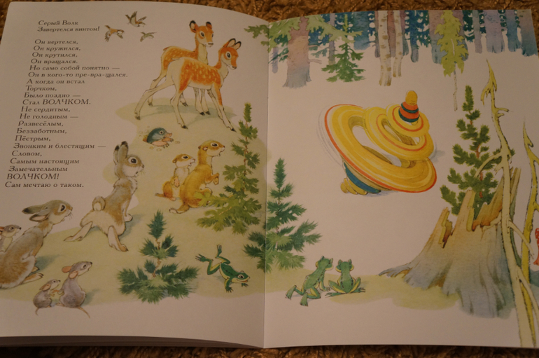 Эта книга нас очаровала! Иллюстрации П.Репкина, такие милые и детские, понятные ребенку и горячо любимые. Картинки крупные и динамичные. И замечательная сказка в стихах Б.Заходера.