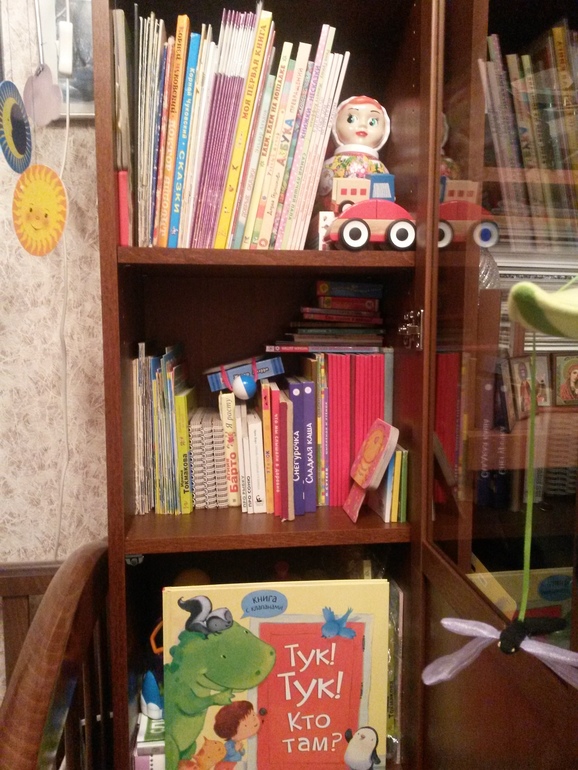 Ну и напоследок наш стеллаж с книгами и частью игрушек.