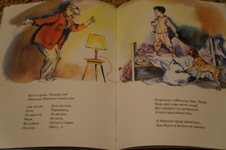 Это замечательная сказка в стихах Ирины Токмаковой, читается на одном дыхании. Замечательная приключенческая история о мальчике Женьке, который каждый вечер капризничал и отказывался спать. Женька хотел грозился убежать к совам.