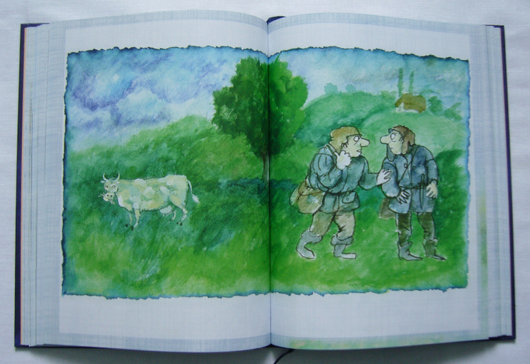 Во-вторых, великолепные рисунки! Положа руку на сердце, я равнодушно отношусь к творчеству Калиновского, где-то даже не понимаю. Но тут его рисунки меня покорили. Даже не могла поверить сначала, что это рисовала одна и та же рука, настолько все рисунки разные, неповторимые, и как прекрасно они передают дух сказок! Проиллюстрированы сказки не все, короткие сказки чаще всего без рисунка.
