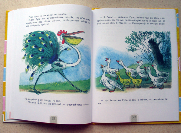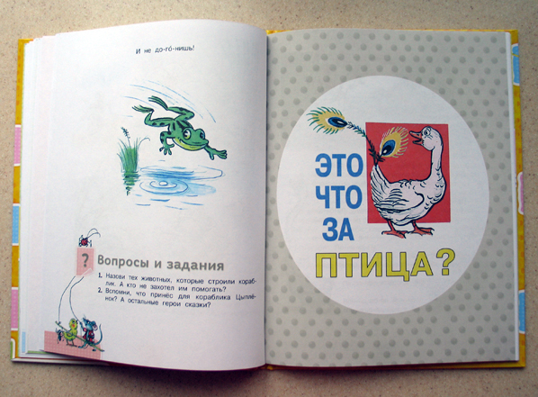 Ну кое-что и смутило. Ещё до книг Сутеева, у нас появились его мультфильмы. Так вот эти сказки и мультфильмы отличаются, кое-где сокращены, а в "Это что за птица?" даже лиса появилась, я вот её не помню.