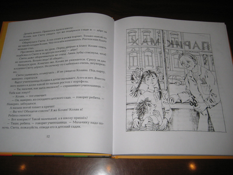 Книга, как говорит мой сын, "про детей". Ну, у него все книги делятся на 3 категории: сказки, книги для того, чтобы стать умным, и про детей :) Так вот я бы сказала: про детей и, что очень важно, ДЛЯ детей. У Махотина очень легкий, живой язык, в целом он немногословен, не грешит длинными описаниями и рассуждениями, но умеет буквально несколькими штрихами так обрисовать характер, что ты очень явственно увидишь перед собой героя. В книге много уморительных моментов и это, конечно, не может не наводить на проведение параллели с рассказами Носова. Юмор очень мягкий, деликатный: