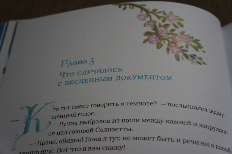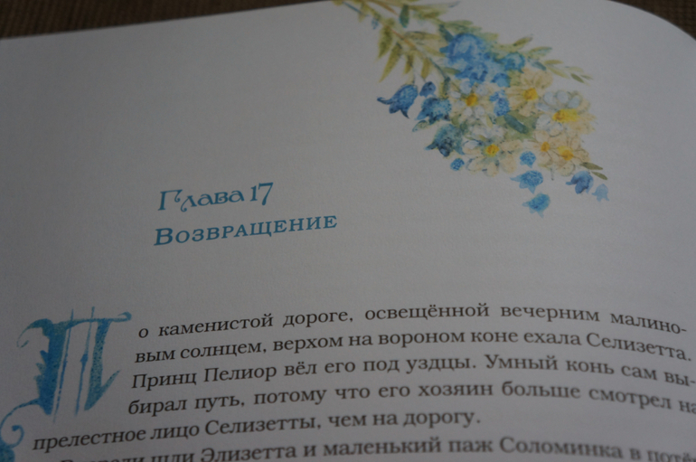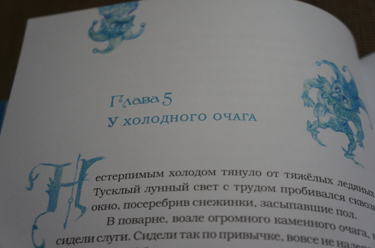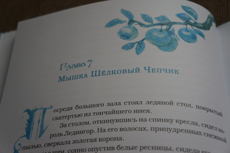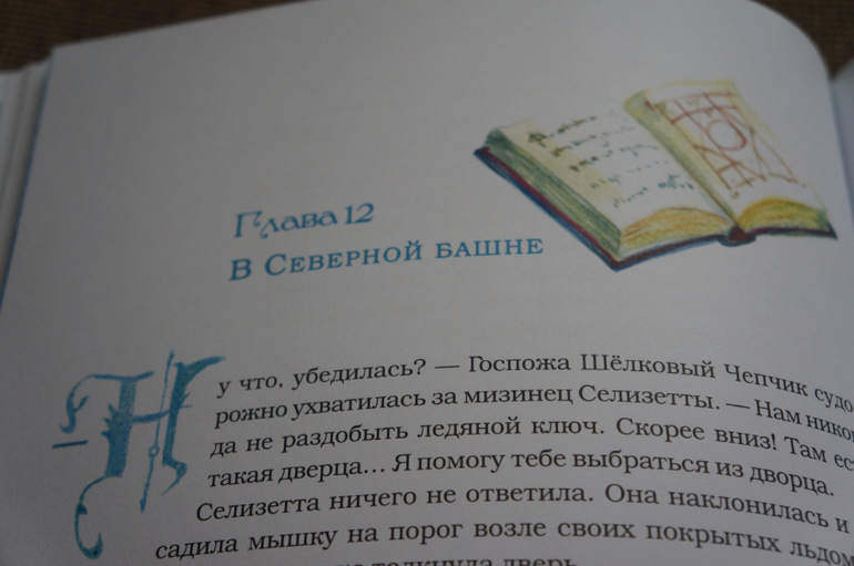 Картинок очень много, они каждой странице. Начало каждой главы обозначено картинкой и красивой заглавной буквой. Что добавляет сказочности и волшебства книге.