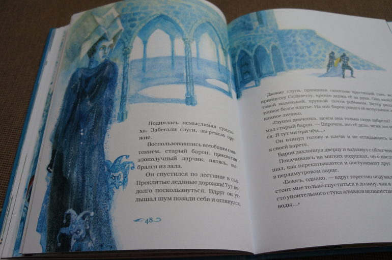 Ледяная обложка с частичной лакировкой и приятным выпуклым тиснением. Невероятно точно подобраны оттенки синего и голубого, даже если просто взглянуть на обложку уже чувствуется холод и пробивает дрожь..