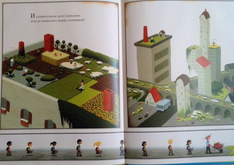 Однажды обнаружив на заброшенной железной дороге полевые цветы, мальчик начинает ухаживать за ними. Через время сад разросся по всей дороге. Зимой сад стоял в снегу, но мальчик готовился к весенним работам. Благодаря его заботе , растения захватили весь город, и удивительное дело-появились новые садовники!