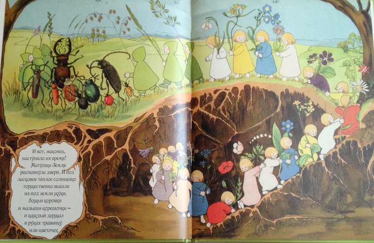 Детки земли-растения, зимой спят корешочки, весной пробуждаются , шьют себе цветные шапочки и всходят над землей красивыми цветами, водят хороводы . Вместе с ними пробуждаются жучки и всякие насекомые.