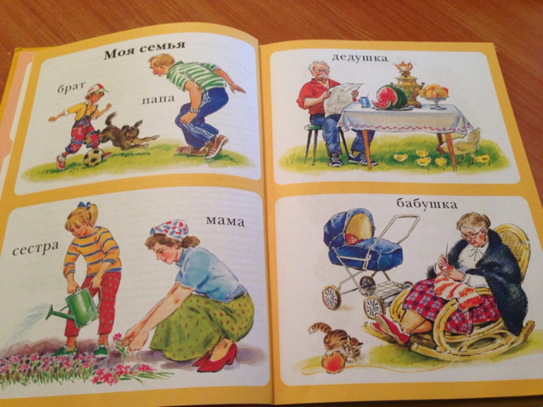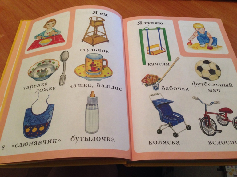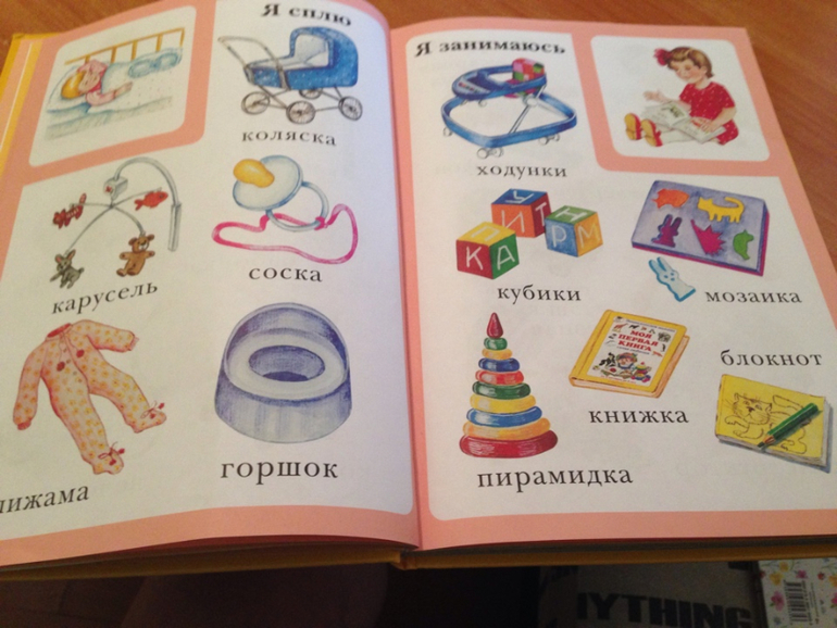 Эти книги, а вернее энциклопедий «Первая книга малыша» и «Моя первая книга» полностью оправдывают свое название - по ним можно рассказать о семье малыша, о строении его тела, об его навыках и способностях; выучить растения, животных, времена года, день и ночь, транспорт и прочие. Текста там нет, только картинки с надписями, этим то они и замечательны.