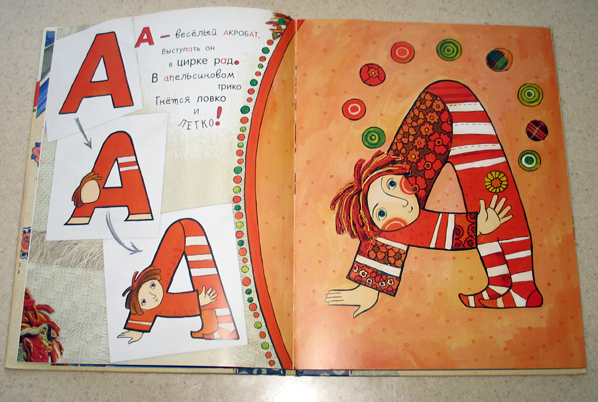"Азбуку превращений" я покупать не собиралась, хотя смотрела на неё уже достаточно долго. Но почему-то я считала, что один букварь у нас есть, карточки с буквами есть, зачем мне ещё и азбука??? Ведь со старшим сыном мы выучили буквы и без этой азбуки. Но в итоге в очередную лабиринтовскую акцию я "сорвалась" и купила. О покупке нисколечко не жалею. Она красочная, яркая, стихи правда на любителя, но сразу привлекла внимание сына.